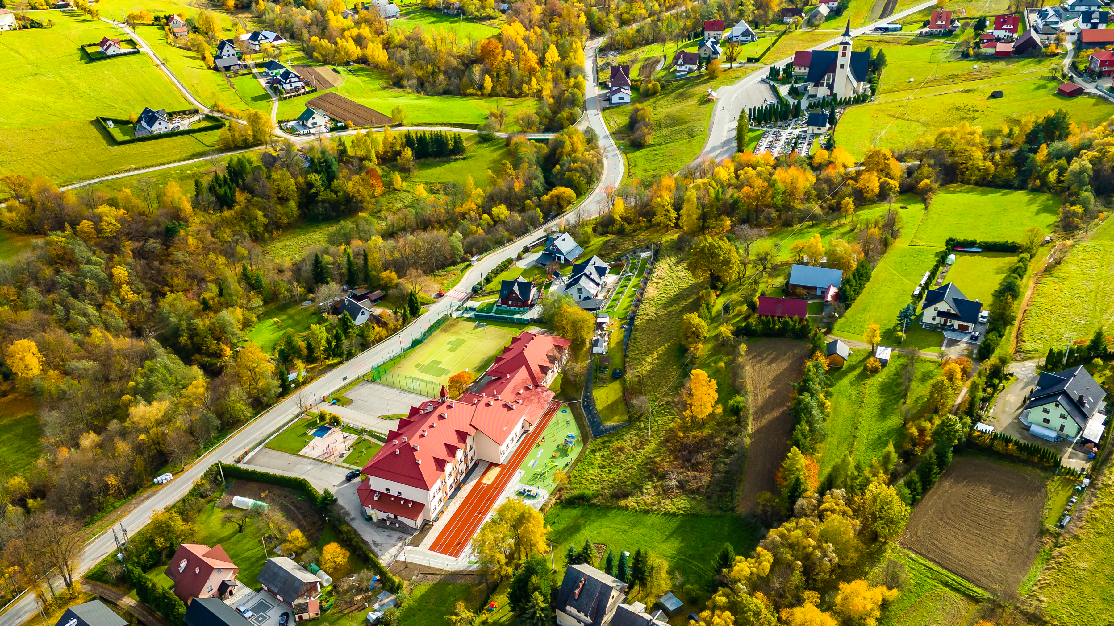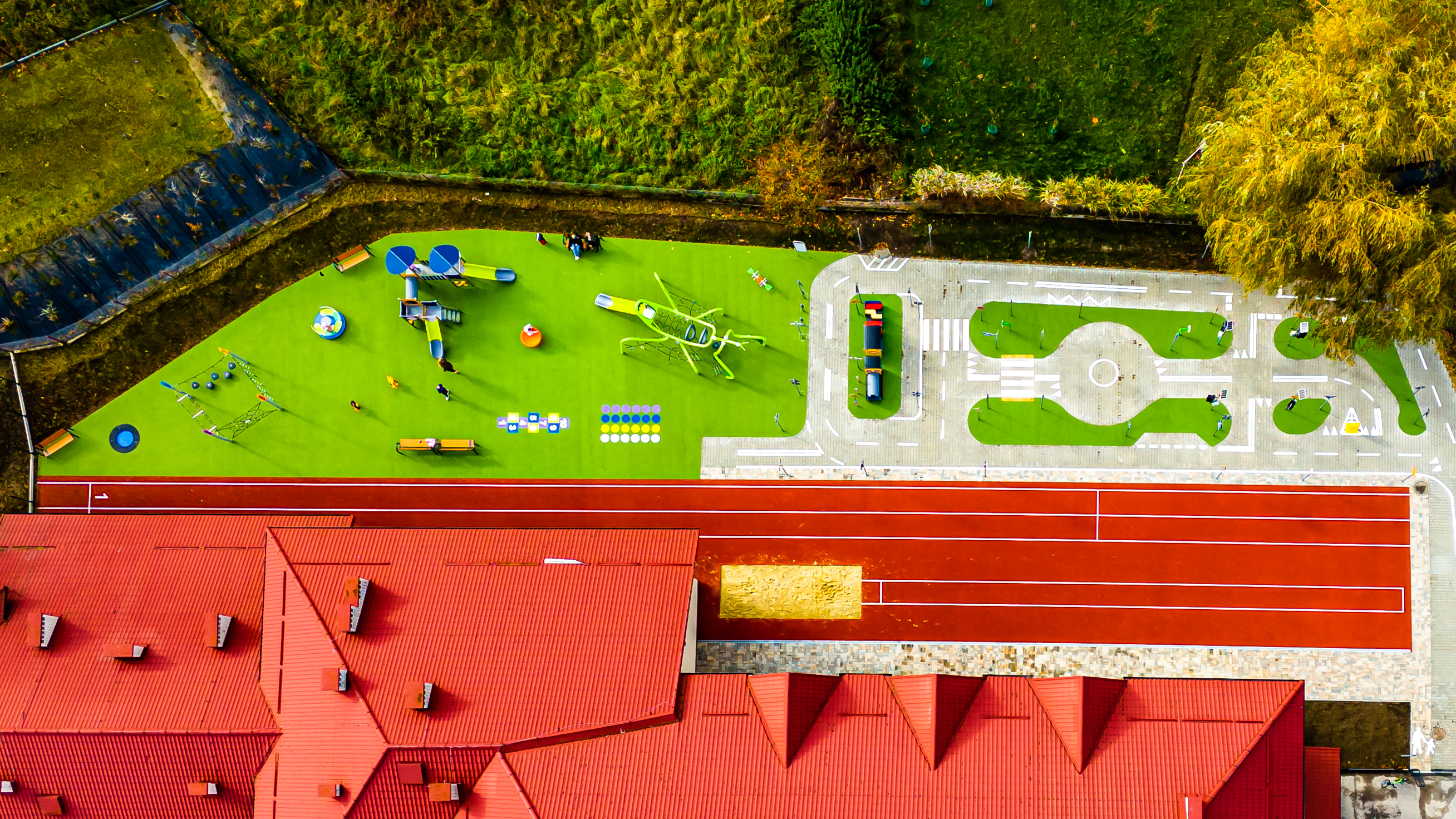 Nowa infrastruktura wzbogaciła bazę sportową szkoły, tworząc bezpieczne i atrakcyjne miejsce do aktywności fizycznej, rekreacji oraz nauki zasad bezpieczeństwa w ruchu drogowym. Dzięki miasteczku rowerowemu dzieci mogą w praktyczny sposób poznawać przepisy i doskonalić umiejętności bezpiecznego poruszania się po drodze. Szczególną uwagę poświęcono komfortowi najmłodszych użytkowników. Nowy plac zabaw został usytuowany za budynkiem szkoły, co zapewnia bezpieczne warunki zabawy oraz komfort korzystania z placu w okresie upalnych dni. Wykonawcą inwestycji była firma Vital Sport Tomasz Pajdzik z Lubomierza, a wartość przedsięwzięcia wyniosła 1 063 899 zł. Dokładnie 80 % tej kwoty zostało przeznaczone ze środków własnych, natomiast pozostałe 210 000 zł pozyskane zostało z projektu Województwa Małopolskiego pn. „Małopolska infrastruktura rekreacyjno – sportowa – MIRS”.