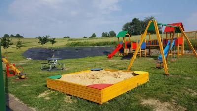 Dodatkowo: całoroczna altana z aneksem kuchennym, toaletą i kominkiem grillowym oraz oświetlone boisko sportowe.