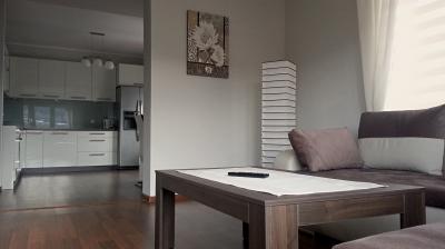 Apartament - kuchnia, łazienka, salon oraz 2 sypialnie z wyjściem na balkon