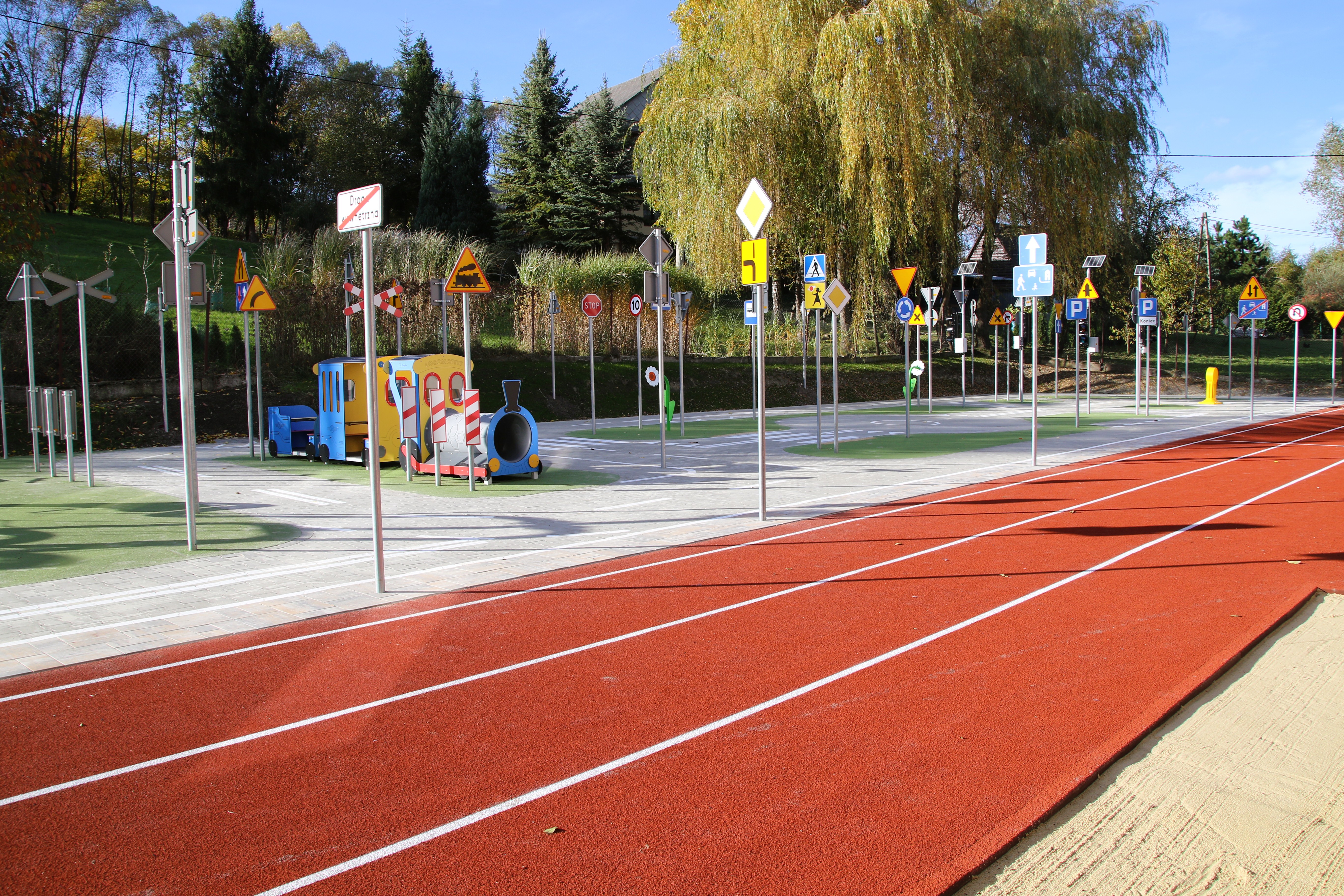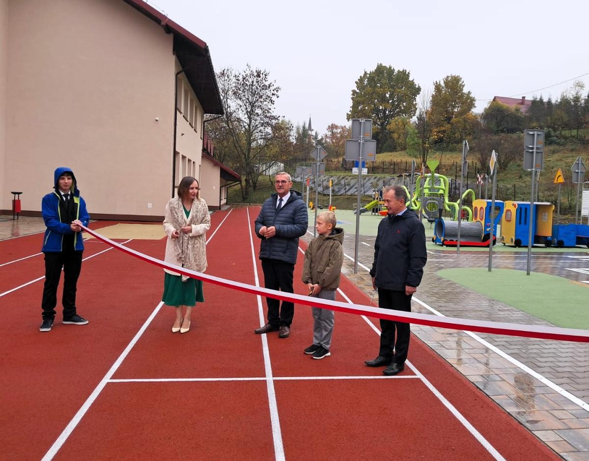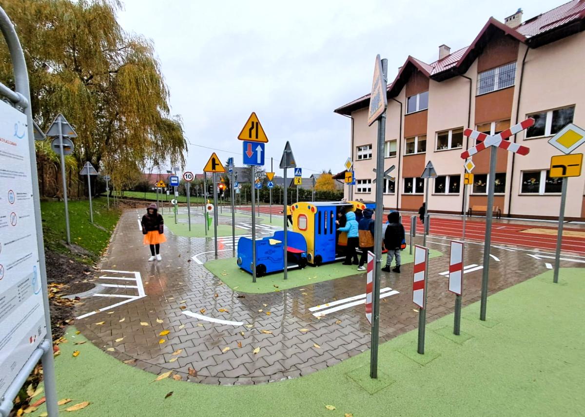 Nowa infrastruktura wzbogaciła bazę sportową szkoły, tworząc bezpieczne i atrakcyjne miejsce do aktywności fizycznej, rekreacji oraz nauki zasad bezpieczeństwa w ruchu drogowym. Dzięki miasteczku rowerowemu dzieci mogą w praktyczny sposób poznawać przepisy i doskonalić umiejętności bezpiecznego poruszania się po drodze. Szczególną uwagę poświęcono komfortowi najmłodszych użytkowników. Nowy plac zabaw został usytuowany za budynkiem szkoły, co zapewnia bezpieczne warunki zabawy oraz komfort korzystania z placu w okresie upalnych dni. Wykonawcą inwestycji była firma Vital Sport Tomasz Pajdzik z Lubomierza, a wartość przedsięwzięcia wyniosła 1 063 899 zł. Dokładnie 80 % tej kwoty zostało przeznaczone ze środków własnych, natomiast pozostałe 210 000 zł pozyskane zostało z projektu Województwa Małopolskiego pn. „Małopolska infrastruktura rekreacyjno – sportowa – MIRS”.