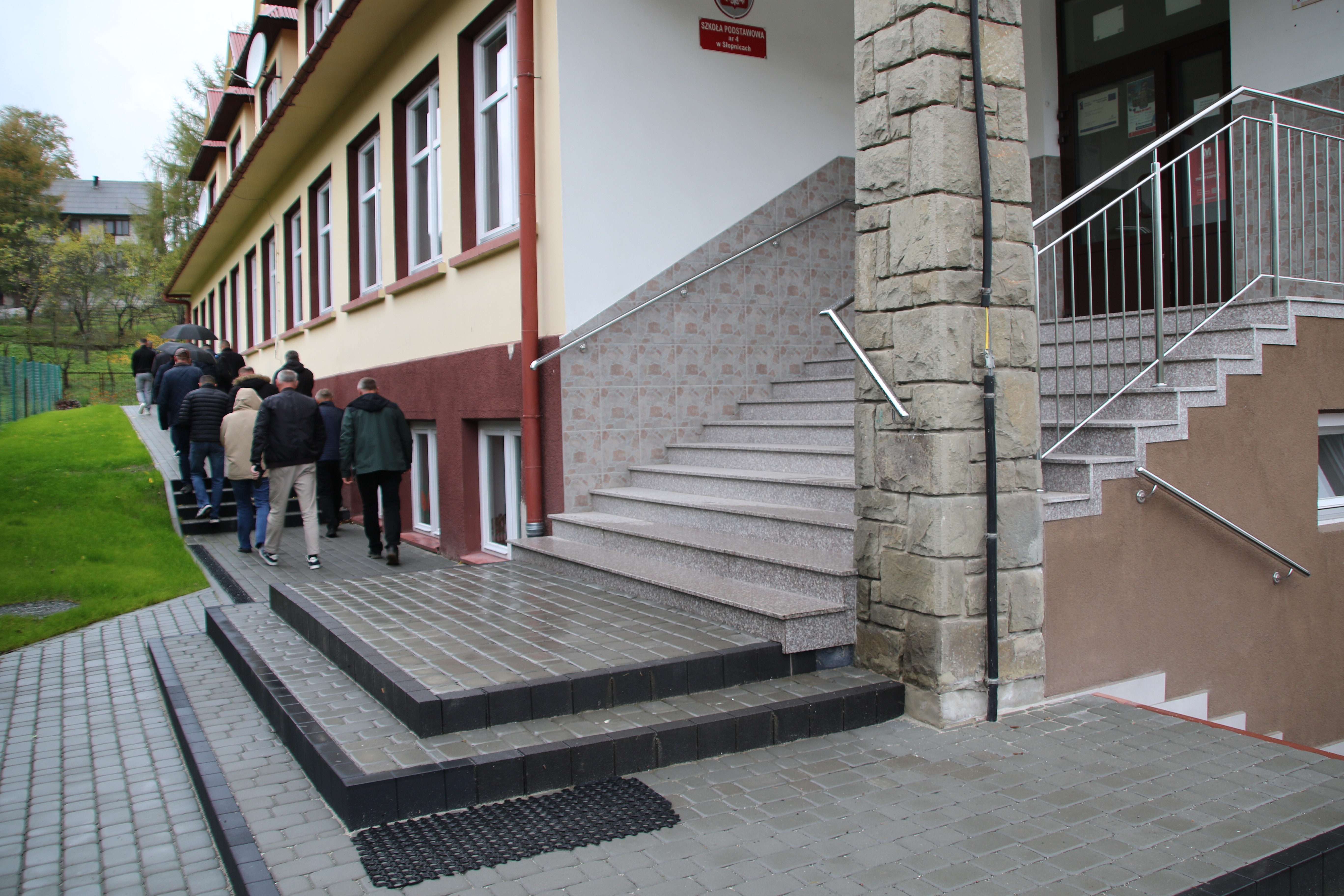 Kolejna wizytowana inwestycja dotyczyła Szkoły Podstawowej nr 4 w Słopnicach. Przeprowadzono tam wymianę oświetlenia oraz malowanie sali gimnastycznej, a także wykonano odwodnienie i zagospodarowanie terenu wokół szkoły.