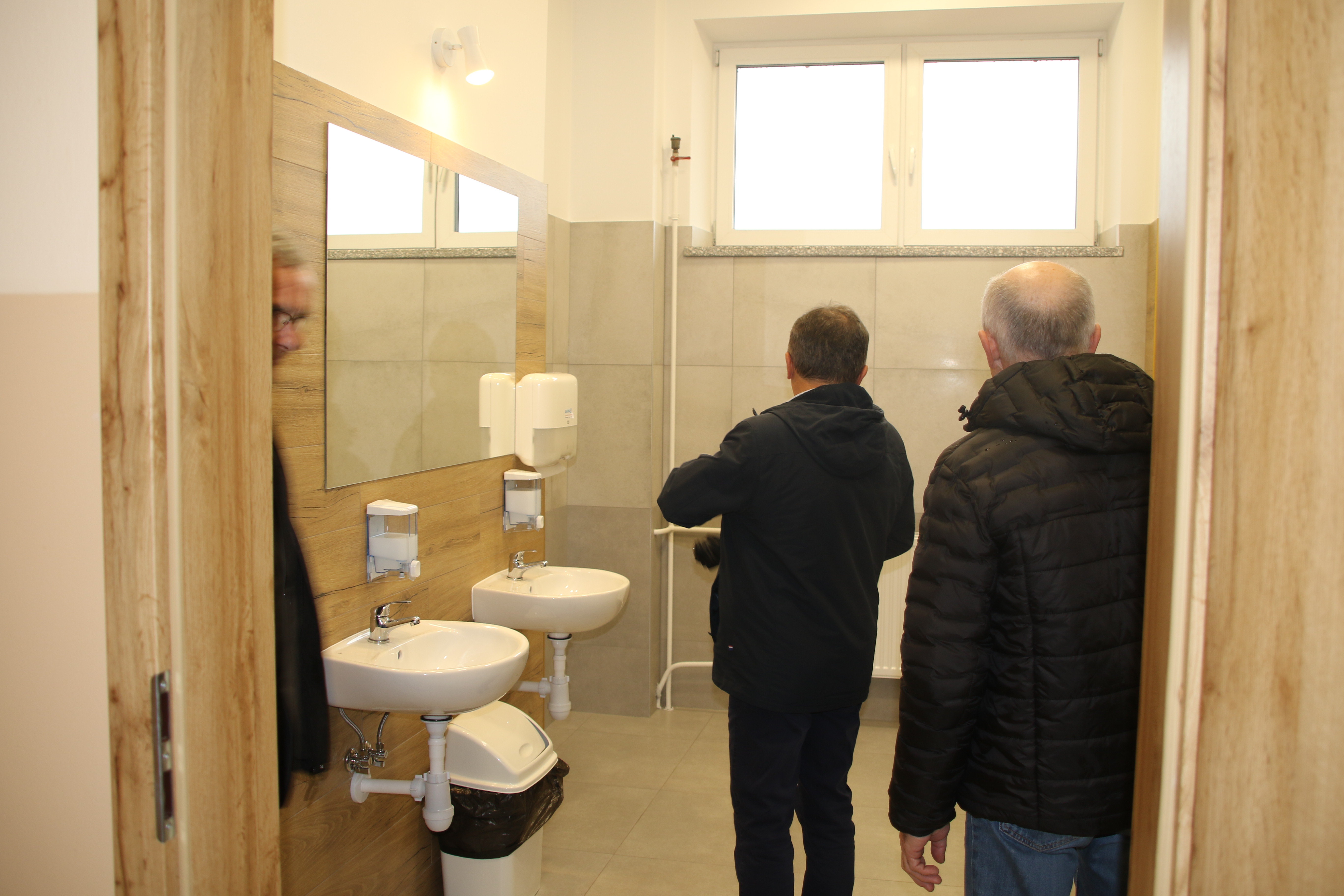 Następnie radni odwiedzili Zespół Placówek Oświatowych w Słopnicach, gdzie zrealizowano gruntowny remont łazienek na trzech kondygnacjach budynku oraz odnowiono budynek gospodarczy.