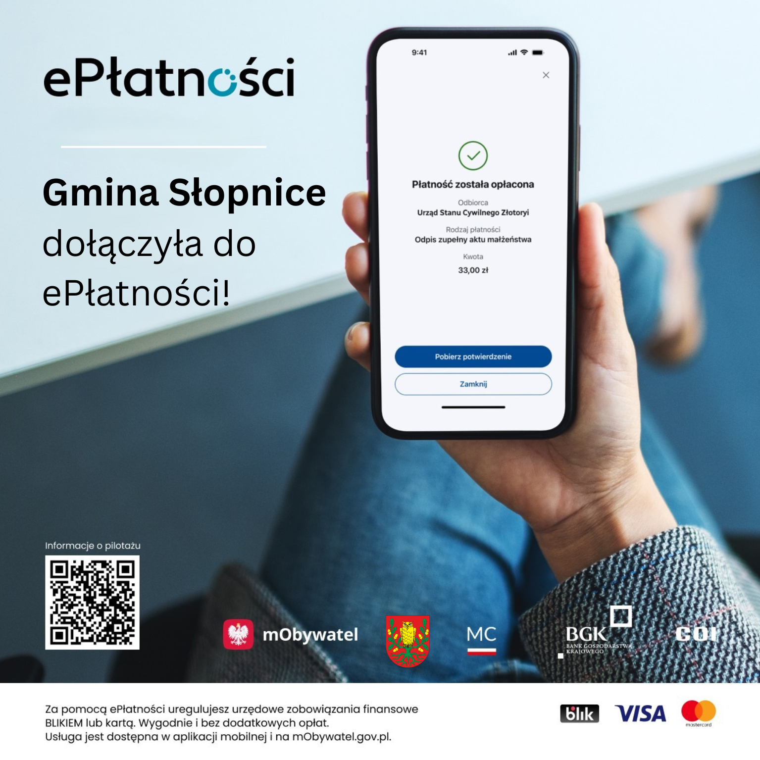 Po pomyślnym zakończeniu pilotażu usługi ePłatności w sołectwie nr 5, od początku listopada 2025 r. możliwość korzystania z tego udogodnienia została rozszerzona na wszystkie sołectwa w gminie. Od teraz wszyscy mieszkańcy Gminy Słopnice mogą w łatwy i szybki sposób opłacać podatek od nieruchomości, rolny i leśny za pomocą aplikacji mObywatel lub na stronie mobywatel.gov.pl.