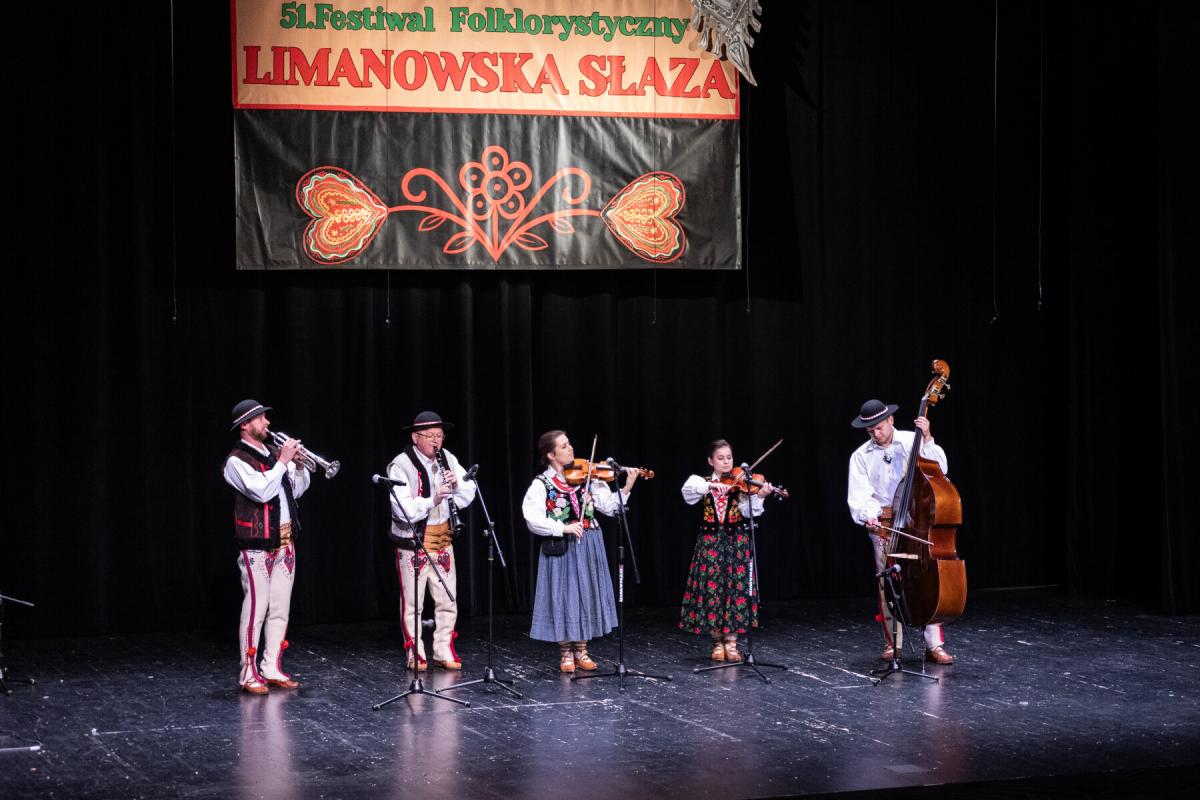 W tegorocznej edycji nie zabrakło reprezentantów Gminy Słopnice, którzy jak co roku potwierdzili wysoki poziom artystyczny, autentyczność oraz ogromne zaangażowanie w pielęgnowanie dziedzictwa przodków. W czterodniowych zmaganiach wystąpiły trzy zespoły ze Słopnic oraz indywidualni artyści ludowi, zdobywając liczne nagrody i wyróżnienia. Najwyższe wyróżnienie tegorocznej „Limanowskiej Słazy” – Grand Prix – zdobył Zespół Regionalny „Słopnicki Zbyrcok”. Jury doceniło widowisko „Wesele Honki i Staska”, ukazujące tradycyjny obrzęd słopnickiego wesela, za autentyczność, wierność tradycji i bardzo dobre wykonanie muzyczne. Zespół zakwalifikował się również do Małopolskiego Konkursu Obrzędów, Obyczajów i Zwyczajów Ludowych „Pogórzańskie Gody”, który odbędzie się w Łużnej w kwietniu 2026 roku.