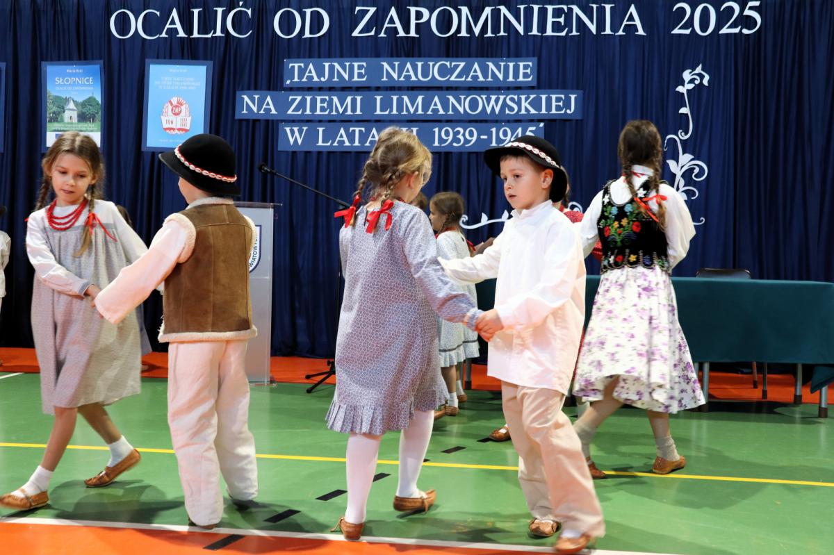 Wydarzenie zgromadziło licznie zaproszonych gości, przedstawicieli lokalnych instytucji, władz samorządowych, organizacji nauczycielskich, a także przyjaciół i sympatyków twórczości autorki. Obecni byli m.in. wójt gminy Słopnice, duchowieństwo, reprezentanci powiatu, dyrektorzy szkół oraz rodzina i przyjaciele pani Marii. Spotkanie, prowadzone przez dyrektor szkoły Renatę Młynarczyk-Pach, przebiegało w serdecznej, pełnej uznania atmosferze. Wójt gminy na ręce autorki przekazał gratulacje oraz egzemplarz „Wielkiej Księgi Limanowian”, podkreślając ogromne znaczenie jej badań dla zachowania i upowszechniania lokalnej historii. Uroczystość uświetnił także występ zespołu Mali Słopniczanie, wprowadzając uczestników w klimat lokalnej tradycji i podkreślając związki twórczości pani Marii z kulturą regionu. Podczas spotkania autorka opowiedziała o pracy nad książką, przybliżając najciekawsze wątki i odkrycia dotyczące tajnej działalności oświatowej w okresie okupacji oraz wyraziła wdzięczność wszystkim, którzy wsparli powstanie publikacji. Uczestnicy spotkania nie kryli podziwu dla jej wieloletniej pracy dokumentacyjnej, zaangażowania i pasji w ocalaniu historii od zapomnienia.