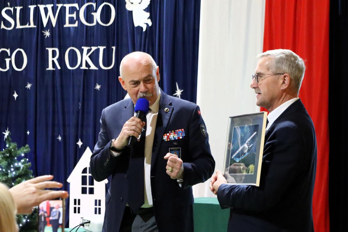 Podczas sesji wójt gminy odebrał również wyjątkowy upominek – obraz przedstawiający awionetkę, wręczony przez prezesa Krakowskiego Klubu Seniorów Lotnictwa Leszka Mańkowskiego. Dar ten był wyrazem kontynuacji dobrej współpracy w zakresie dbałości o pamięć i lokalną historię.