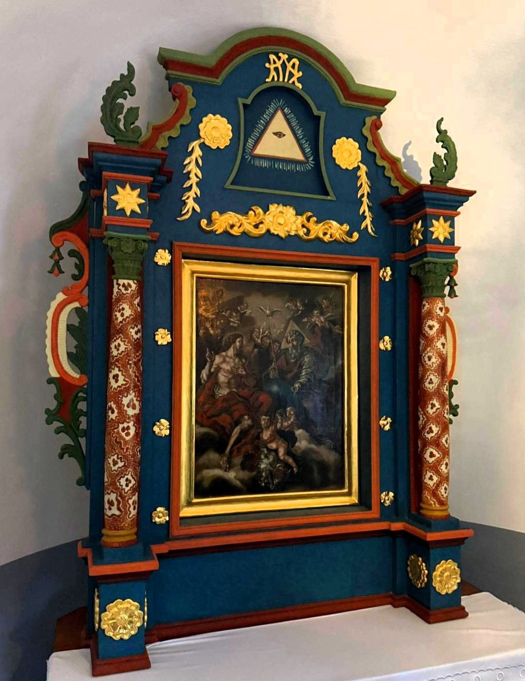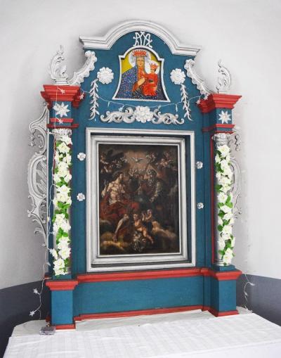 Drugim odnowionym obiektem był drewniany ołtarz z kapliczki domkowej w osiedlu Sroki nad Tartakiem. Wartość tej inwestycji wyniosła 20 000 zł, koszty renowacji po w połowie pochodziły z budżetu samorządu województwa małopolskiego i budżetu gminy Słopnice. Kapliczka, wzniesiona na początku XIX wieku w stylu barokowym, została ufundowana przez rodzinę Kaimów oraz mieszkańców osiedla i do dziś pełni ważną funkcję religijną – odbywają się tam m.in. nabożeństwa majowe. Drewniany, rokokowy ołtarz z obrazami Trójcy Świętej z 1835 r. oraz Matki Boskiej Niepokalanie Poczętej wymagał pilnej interwencji konserwatorskiej. Prace objęły oczyszczenie powierzchni, usunięcie zabrudzeń i starych nawarstwień lakieru, zabezpieczenie drewna przed szkodnikami, impregnację oraz uzupełnienie ubytków i rekonstrukcję najbardziej zniszczonych elementów. Przeprowadzono również punktową konserwację malowideł oraz ich zabezpieczenie.