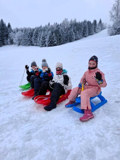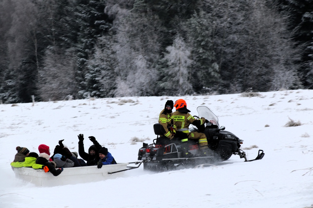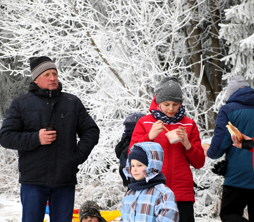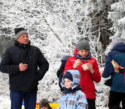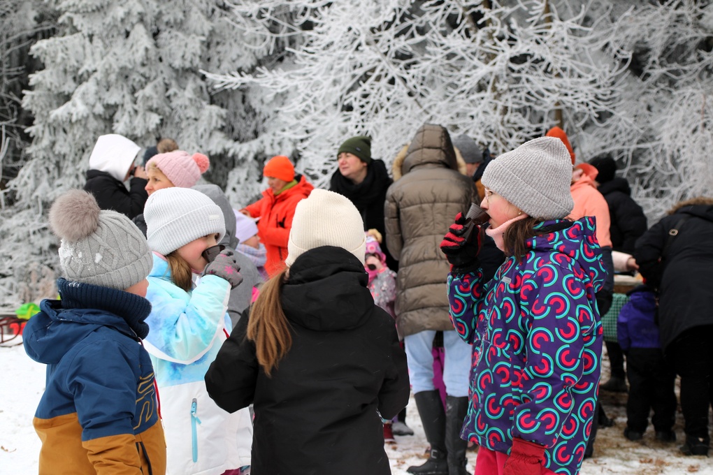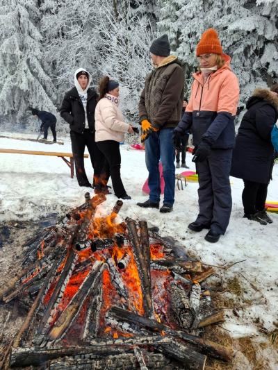 Choć termometr pokazywał ujemną temperaturę, na stoku nie zabrakło energii, uśmiechu i radosnej atmosfery. Było to spotkanie pełne naturalnej, spontanicznej zabawy i prawdziwie społecznego charakteru — dzieci z uśmiechami na twarzach korzystały z atrakcji, a dorośli cieszyli się wspólnie spędzonym czasem. Na uczestników czekały m.in. zjazdy i ślizgi na śniegu, kulig za skuterem śnieżnym, konkursy z nagrodami, drobne gadżety oraz różnorodne zabawy, dzięki którym każdy mógł znaleźć coś dla siebie. Chętni mieli okazję spróbować swoich sił na nartach biegowych, a po aktywnościach można było ogrzać się przy ognisku, skosztować rozgrzewającej herbatki oraz ciepłych posiłków.