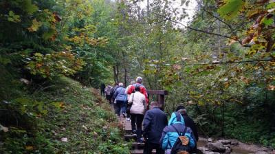 To jedna z największych przyrodniczych atrakcji Pienin. Wąwóz Homole ma długość ok. 800 m i w swej skalnej części tworzy głęboki V-kształtny kanion o bardzo stromych ścianach dochodzących do 120 m wysokości. Początek wąwozu obwarowany malowniczymi skałami, znajduje się przy wjeździe do Jaworek, wyżej wąwóz rozszerza się w Polanę Dubantowską. Dużą rolę w jego wyżłobieniu odegrał również płynący nim potok Kamionka. Tworzy on w wąwozie kaskady, a jego koryto zawalone jest wielkimi głazami. Następnie seniorzy udali się do Muzeum Pienińskiego im. Józefa Szalaya, które mieści się w budynku dawnej straży granicznej w Szlachtowej koło Szczawnicy. Ekspozycja prowadzi zwiedzających szlakiem przeszłości regionu pienińskiego. Można poznać tych, którzy tu od wieków mieszkali, zanim powstało uzdrowisko w Szczawnicy. Dowiedzieć się, czym była dla nich rzeka Dunajec. Wkroczyć też w XIII wiek, w czasy wznoszenia w Pieninach zamków obronnych i zakładania osad przez św. Kingę. Można poznać mieszkańców pienińskich wsi, których łączyła wspólna gospodarka pasterska, podobne budownictwo i strój ludowy, ich charakterystyczne zajęcia – flisactwo u Górali i druciarstwo u Rusinów. Dalsza ekspozycja prowadzi do kurortu w Szczawnicy, można poznać metody lecznicze stosowane w dziewiętnastowiecznym uzdrowisku, odkryć urok dawnych szczawnickich plenerów i wnętrz. Była to już ostatnia w tym roku wycieczka terenowa, ale nie jest to jeszcze koniec działań projektowych. Projekt jest realizowany ze środków Gminy Słopnice oraz Małopolskiego Urzędu Wojewódzkiego w Krakowie.