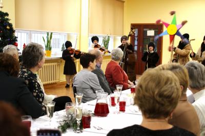 "Na scoście, na zdrowie..." to słowa rozpoczynające życzenia, które bardzo dobrze znają seniorzy z gminy Słopnice. Sami niegdyś odwiedzali domostwa, składając takie życzenia gospodarzom. Świąteczne spotkanie seniorów, które miało miejsce 18 stycznia w Zespole Placówek Oświatowych, rozpoczęli kolędnicy z zespołu Mali Słopniczanie, składając zebranym tradycyjne życzenia. Śpiewali i grali przy tym staropolskie kolędy i pastorałki, a zebrani ochoczo dołączali się do wspólnego kolędowania. Ponieważ byli z nami pan Wójt i Skarbnik, pełniący równocześnie funkcję wiceprzewodniczącego Rady Powiatu, seniorzy mieli okazję zapoznać się z najważniejszymi sprawami zarówno gminy Słopnice jak i Powiatu Limanowskiego. Przy akompaniamencie akordeonu, śpiewaliśmy kolędy zarówno te znane, jak i te zapomniane już pastorałki, które seniorzy pamiętają z dawnych lat.