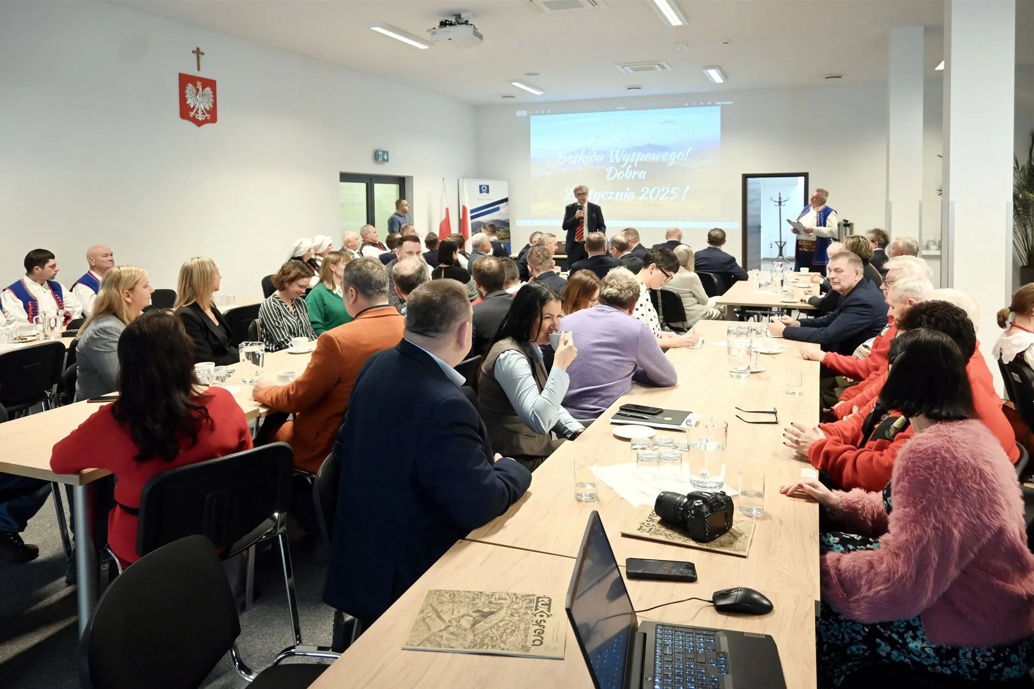 We wtorek, 21 stycznia 2025 r., samorządowcy, działacze społeczni oraz pomysłodawcy i organizatorzy akcji „Odkryj Beskid Wyspowy”, spotkali się by podsumować zeszłoroczne działania oraz zaplanować kalendarz wydarzeń w 2025 roku. Spotkanie to, było również okazją do wyróżnienia osób i instytucji, które na przestrzeni lat w sposób szczególny angażują się w promocję Beskidu Wyspowego. Podczas trzeciej edycji wydarzenia, wyróżnienie w postaci „Złotego Rysia” otrzymał także Wójt Gminy Słopnice Adam Sołtys. Biogram wójta przedstawia go jako samorządowca, działacza społecznego i przewodnika górskiego. Z zamiłowania fotografa, historyka oraz miłośnika górskich wędrówek. Podkreślono także ważną rolę inicjatora wielu wydarzeń i przedsięwzięć m.in. „Złazu na Mogielicy”, powstania tras narciarstwa biegowego wokół Mogielicy, budowy wieży na Mogielicy oraz ścieżki historyczno-edukacyjnej w Słopnicach.