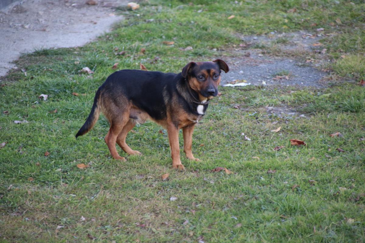 Pies jest nieduży, umaszczenie czarne podpalane. Zdjęcia psa zamieszcza się poniżej. Pies ma obrożę. Jeśli ktoś poszukuje tego psa – lub zna jego właściciela – lub zechciałby się nim zaopiekować – to prosi się o kontakt na nr telefonu 183347426.